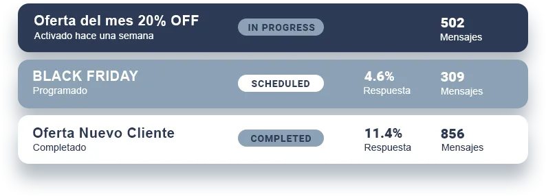 Aproveche la tasa de apertura del 98% de los mensajes de texto con campañas de marketing por WhatsApp y Correo que obtienen una respuesta real y resultados medibles.